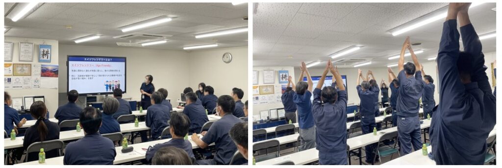 睡眠のセミナーでは良い睡眠のとり方やポイントについて学び、エイジフレンドリーでは高齢者が安心して働ける職場について学びました。